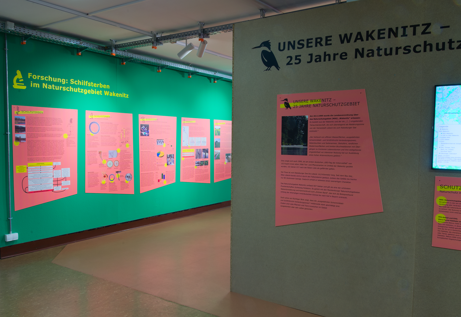 Aufgabenfelder: Entwicklung des Gestaltungskonzeptes und Gestaltung der Ausstellung in Zusammenarbeit mit Nils Heck, Museum für Natur und Umwelt und der Wakenitz-AG.